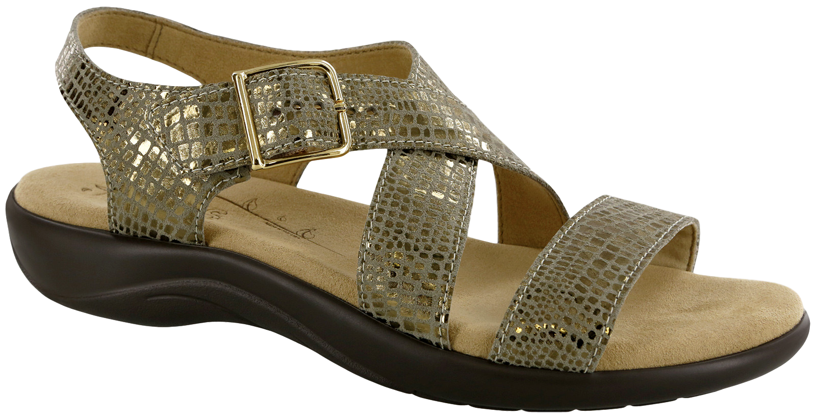 Your new favorite sandal. Laguna combines beautiful, genuine leather straps with the ultimate comfort of a Contoured, Padded Insole and Supersoft® sole, providing a perfect combination for the fashionable sandal-wearer. A metallic buckle across the instep ensures a perfect fit.